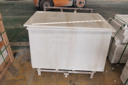 广西白大理石工程板加工定制规格厚度定制白底黄纹石立方厂家直供