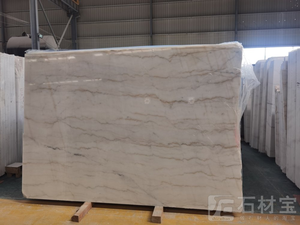 石材宝 广西石立方石业 产品展示 大板展示 广西白大板 白底黄纹大理石